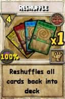 Reshuffle helps to make small-scale decks viable, and is highly recommended for questing and pvp. For routine mob fights, using a pocket-sized deck helps you find the right cards to end the battle quickly and movement on to the next quest. A small deck can also help yous kill quickly in pvp or find your heals quickly when you need them. Even so, using a small deck has a drawback: you as well run out of cards apace, and if you run out of cards you lot can't fight back and are forced to abscond and try again. Reshuffle combats this problem by allowing you to regain the contents of your deck in the same battle. It'south your failsafe if things become incorrect, and believe me, things can get wrong.