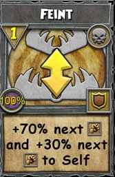 Feint is a risky spell with a great reward. Information technology provides a seventy% trap on the enemy at the cost of a thirty% trap on you. This will be your ticket to big damage on bosses with a lot of health, or a great way to help your friends hit harder. Don't waste material your feints with a wand spell, though!
