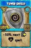 Tower Shield is useful because it can protect you from any attack, no thing what school. This tin be trained from Lydia Greyrose. It is especially helpful for multiple-school bosses you may encounter after on, and it can save your life in PvP or particularly challenging fights, especially if you have Bolstered Ward to stack shields of different strengths. The Volcanic Shield yous go on the way is also very helpful because it gives y'all a 70% shield for storm and fire, the ii highest damage-dealing schools.